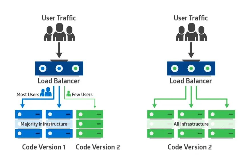 通过在线上运行的服务中,新加入少量的新版本的服务,然后从这少量的新版本中快速获得反馈,根据反馈决定最后的交付形态。