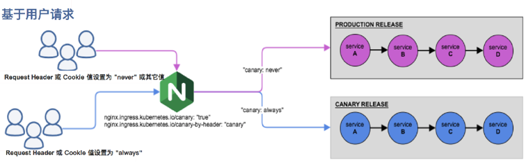 canary-by-cookie和canary-by-header-value适合后端金丝雀发布实现