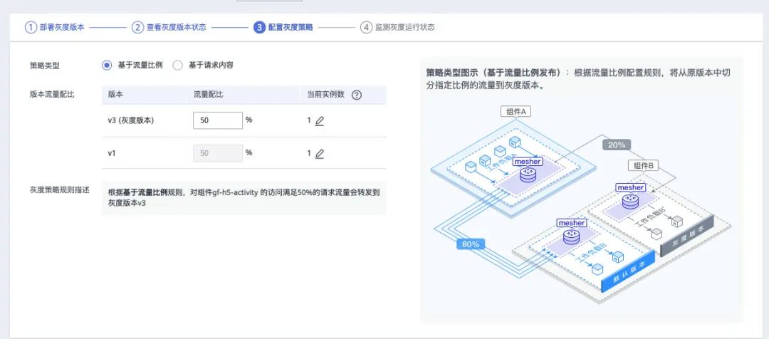 切分20%的流量到新版本后,新版本出现异常,则快速将流量切回老版本。