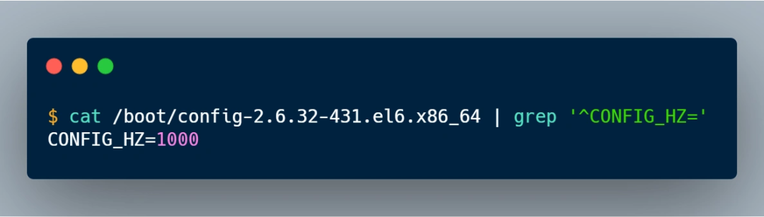 关键就需要 HZ 这个数值大小,HZ 是跟系统的时钟频率有关,每个操作系统都不一样,在我的 Linux 系统中 HZ 大小是 1000,如下图: