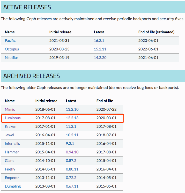 https://docs.ceph.com/en/latest/releases/