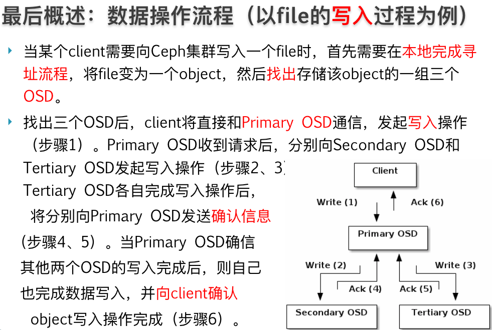 在6.1小节egon就给大家提过,主 OSD 负责同时向一个或者多个次 OSD 写入副本。注意这里是写到日志(Journal)就返回,因此,使用SSD作为Journal的话,可以提高响应速度,做到服务器端对客户端的快速同步返回写结果(ack)。