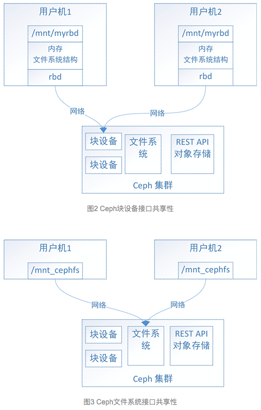 rados集群是ceph的服务端,依据高层接口封装的应用则是客户端。