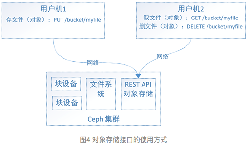 对象存储: 跟你自己开发的应用程序打交道, 如网盘
