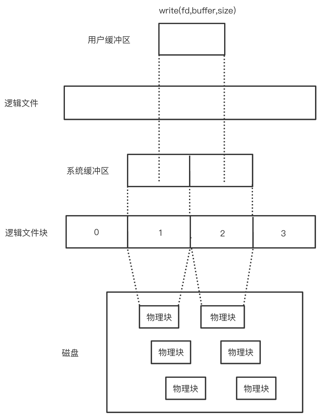 物理块与文件系统之间的映射关系为:扇区→物理块→逻辑块→文件系统,详见下图