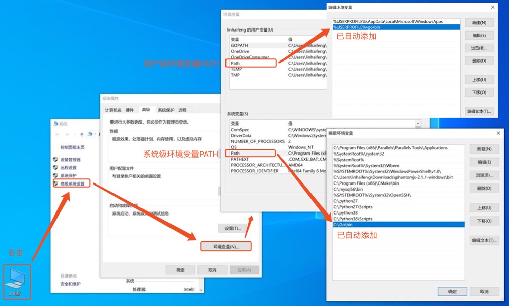 在Windows平台下,除了要清理用户级与系统级PATH外,还要记得清理到所有Go相关的环境变量,比如GOPATH