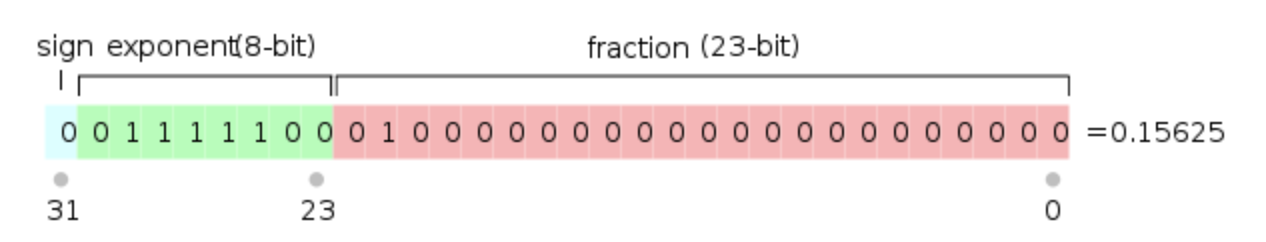 十进制浮点数0.15625转成二进制的形式0.00101,过程略