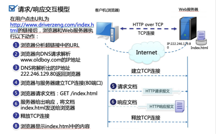http协议就是将用户的请求发送到服务器,再将服务器返回的内容传输给浏览器,浏览器进行解析,解析成便于人类读取的页面