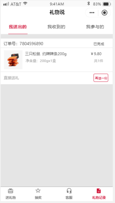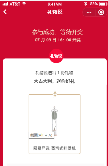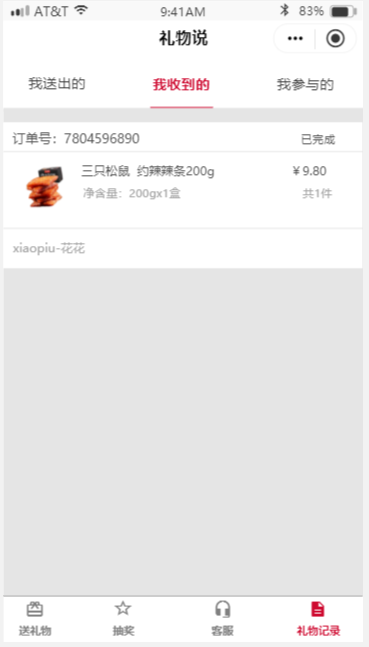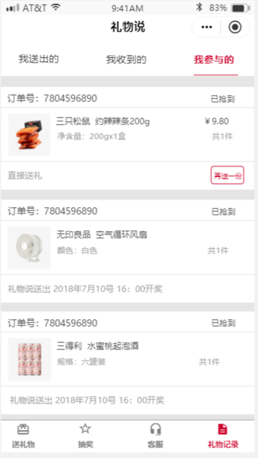 当购买者将礼物分享出来以后,用户点击参与抽奖