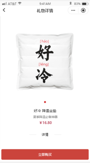 点击礼物,进入礼物详情页,可以点击立即购买,然后返回礼物生成页