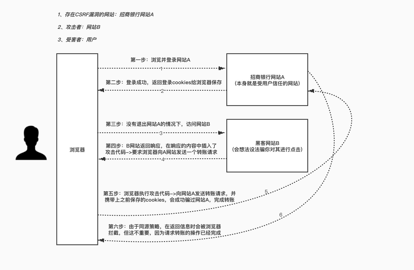 针对跨域访问,浏览器基于安全考虑,内置了一种机制叫同源策略,同源策略不限制跨域的请求包,但是跨域请求得到的响应包会被浏览器丢弃,即同源策略不允许你跨域访问对方的数据
