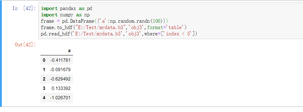 frame.to_hdf("E:/Test/mydata.h5",'obj3',format='table')