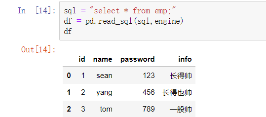 conn = create_engine("mysql+pymysql://root:123@localhost:3306/pd_test")
