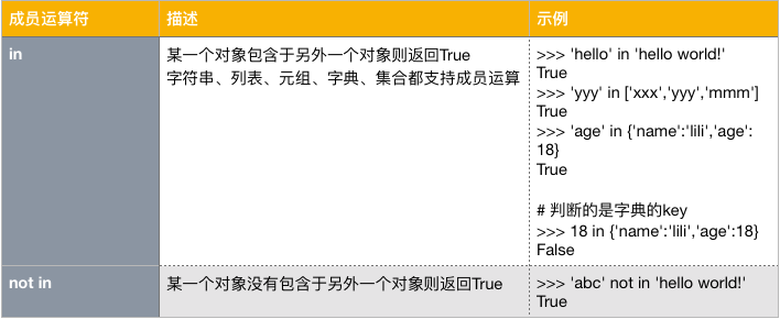 注意:虽然下述两种判断可以达到相同的效果,但我们推荐使用第二种格式,因为not in语义更加明确