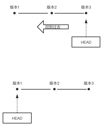 从当前版本,回到过去的版本,按图所示是向左回退