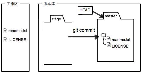 $ git commit -m "版本1" # 把暂存区的内容提交到版本库