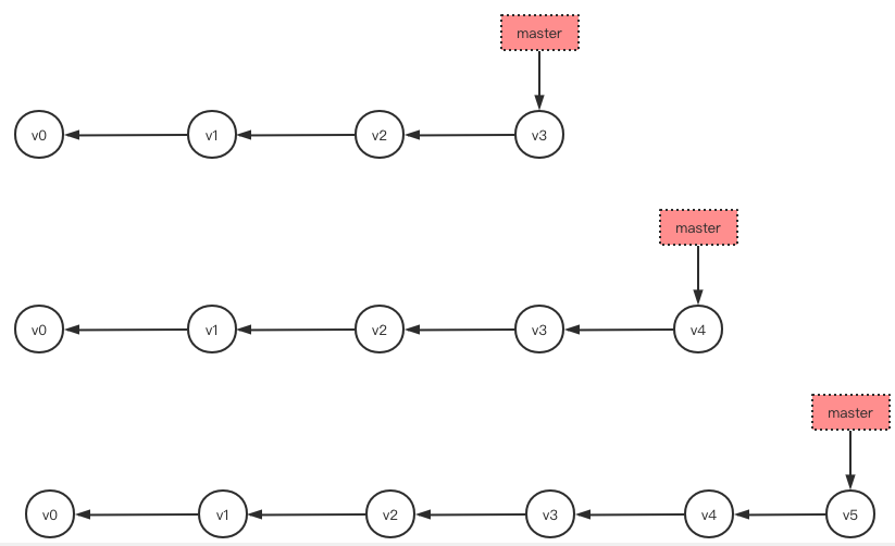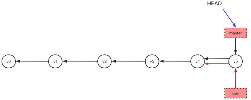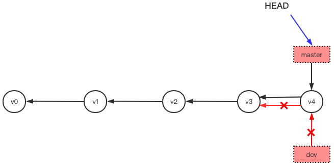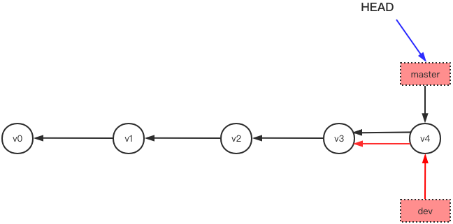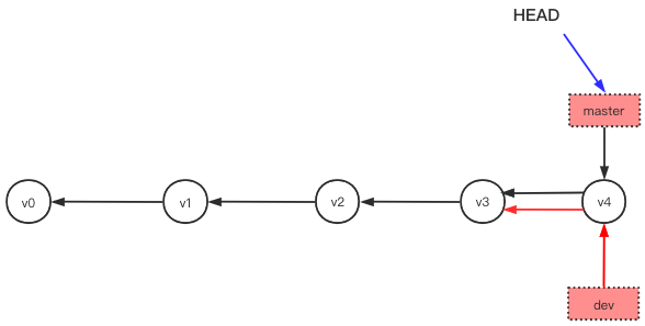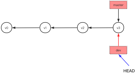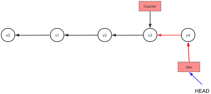 比如提交一次后,dev指针往后移动一步,而master指针不变