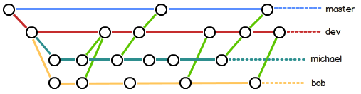 你和你的小伙伴们每个人都在dev分支上干活,每个人都有自己的分支,时不时地往dev分支上合并就可以了。