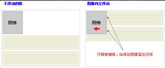 浮动框旁边的行框被缩短,从而给浮动框留出空间,行框围绕浮动框。