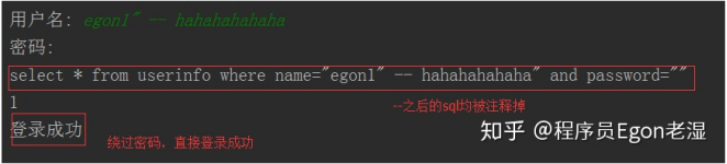 最后那一个空格,在一条sql语句中如果遇到select * from t1 where id > 3 — and name=’egon’;则–之后的条件被注释掉了