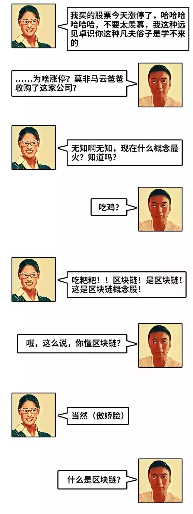 10 怎么向女朋友解释什么叫区块链 python奇闻杂技,干货 678 字 | 3 分钟 现在最火热的科技和风口,无疑就是“区块链”了。很多投行面试中也总是会被问到 于是,发生了下面的故事…… 有一对恩爱的男女朋友开始了这样的对话,我们暂且叫他们小明和小花吧。 (将就点,现在流行乡土味) 就这样,可爱的小明遭到了一顿暴打……查看更多联系管理员微信tutu19192010,注册账号 Username:Password:Log inRegisterForgotten username or password?