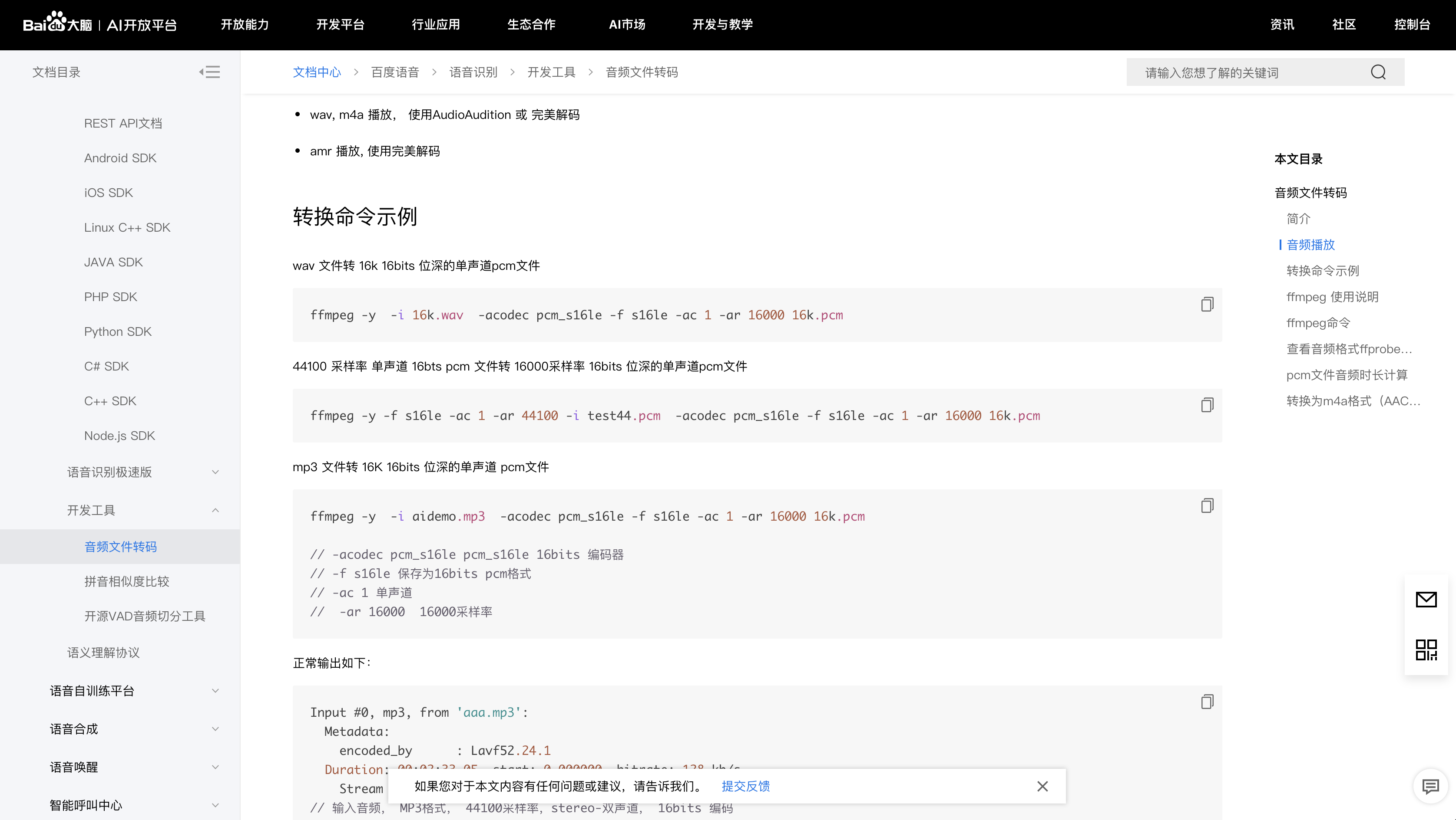 音频转文字的需求我们通过百度的借口解决了,接着要解决的就是把目标视频文件转换为百度API所支持的音频(对应格式,参数)。