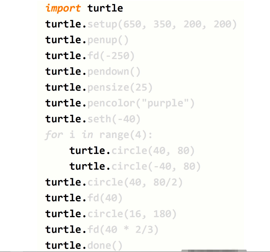 turtle.pencolor(color)color为颜色字符串或r,g,b值:画笔颜色,海龟在涂装,pencolor(color)的color参与可以有三种形式 :- 颜色字符串 :