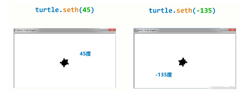 turtle.setheading(angle)别名turtle.seth(angle)- angle: 行进方向的绝对角度