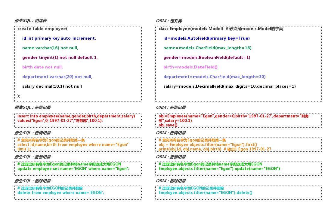 如此,开发人员既不用再去考虑原生SQL的优化问题,也不用考虑数据库迁移的问题,ORM都帮我们做了优化且支持多种数据库,这极大地提升了我们的开发效率,下面就让我们来详细学习ORM的使用吧