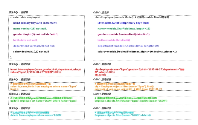 如下所示:原生SQL与ORM的模型对应关系