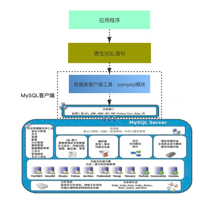 如果应用程序需要操作数据(比如将用户注册信息永久存放起来),那么我们需要在应用程序中编写原生sql语句,然后使用pymysql模块远程操作mysql数据