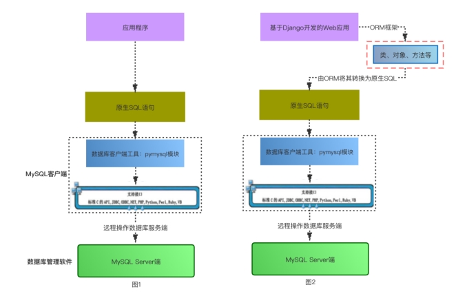 为了解决上述问题,django引入了ORM的概念,ORM全称Object Relational Mapping,即对象关系映射,是在pymysq之上又进行了一层封装,对于数据的操作,我们无需再去编写原生sql,取代代之的是基于面向对象的思想去编写类、对象、调用相应的方法等,ORM会将其转换/映射成原生SQL然后交给pymysql执行