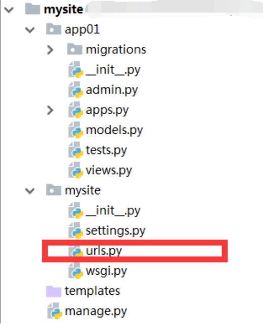 路由即请求地址与视图函数的映射关系,如果把网站比喻为一本书,那路由就好比是这本书的目录,在Django中路由默认配置在urls.py中,如下图: