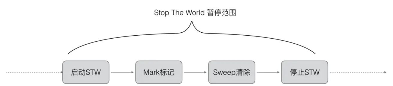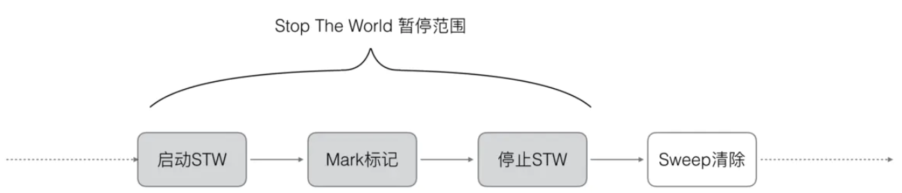 STW英文全称Stop The World,指的是通过STW保证GC期间标记对象的状态不能变化,具体实现是暂停整个程序运行,然后进行垃圾回收,在外部看来程序就会卡顿。