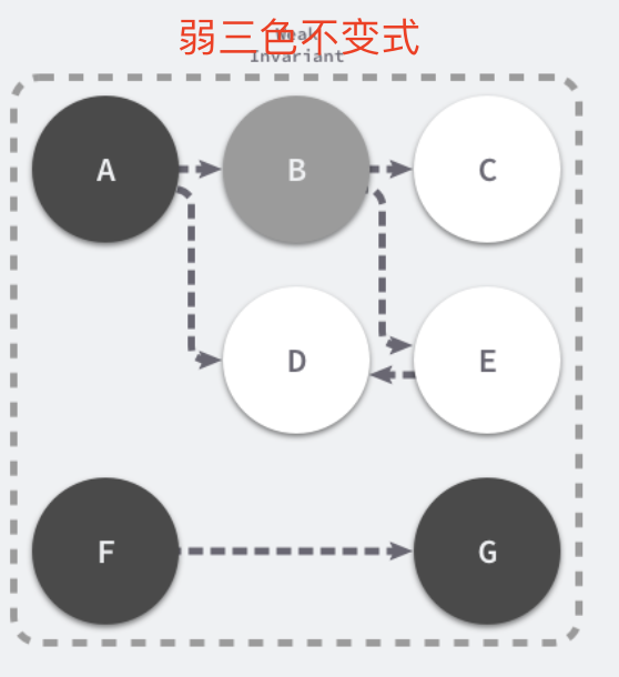 - 强三色不变性 — 黑色的 A 对象直接指向白色的 C 对象;