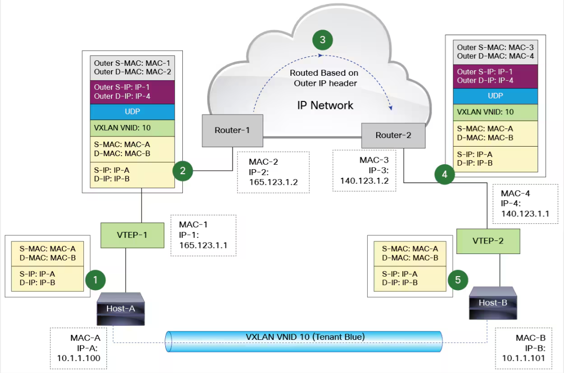 两个 VTEP 之间的 VXLAN tunnels 是无状态的。