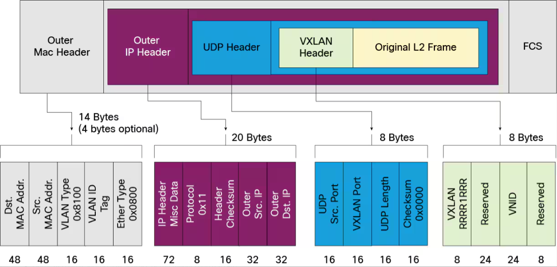 VNID:表示该帧的来源虚机所在的 VXLAN 网段的 ID
