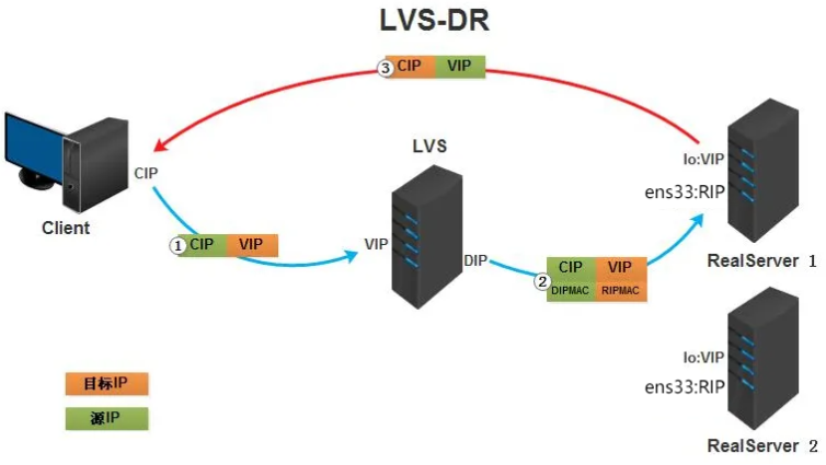 1、LVS-DR模式改变的是底层的mac地址,客户端ip地址本身就是透传的