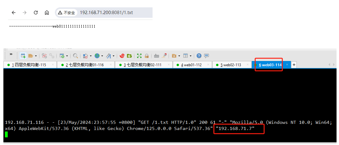 [root@web01 ~]# curl http://192.168.71.200:8081/1.txt --------------------web01111111111111111 [root@web01 ~]# curl http://192.168.71.200:8081/1.txt --------------------web01111111111111111 [root@web01 ~]# curl http://192.168.71.200:8081/1.txt -------------web02222222222222222222 [root@web01 ~]# curl http://192.168.71.200:8081/1.txt -------------web02222222222222222222 [root@web01 ~]# curl http://192.168.71.200:8081/1.txt ---------------------web033333333333333333333333333333333333 [root@web01 ~]# curl http://192.168.71.200:8081/1.txt ---------------------web03333333333333333333333333333333333