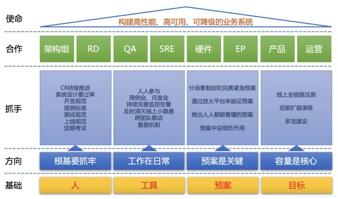 结合咱们上述讨论的几点,我们可以画出稳定性建设的房子,如下,希望我们能像建筑师一样,给业务构建一套稳定、可扩展、性价比高的房子!!!