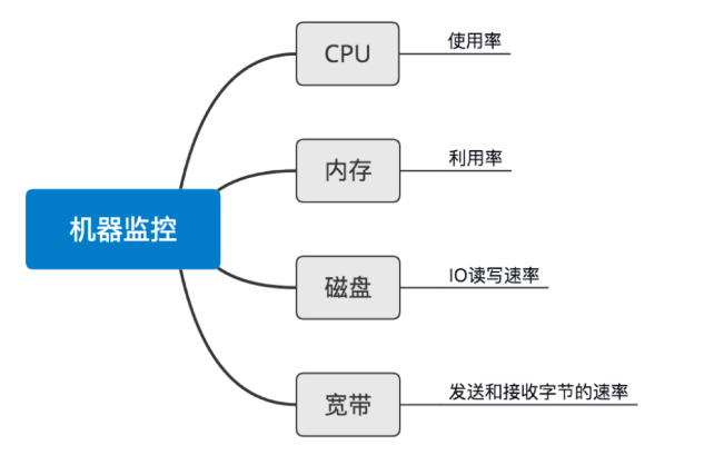 机器监控需要关注的内容,应该是后台研发比较熟悉的部分。 主要监控方向包含下面几个部分:当然在 linux 系统中,也有各种常用指令,来进行该类数据的收集:top、free、ping、iostat、netstat。 对于 Java 系统来说,需要进行 JVM 层面的监控内容,比如说:gc 的情况,线程创建销毁情况,full gc 情况,内存不同模块使用情况等。 JVM 同样也提供了指令集,方便我们进行信息的查找:jstat、jps、stack、jmap、jhat 等。